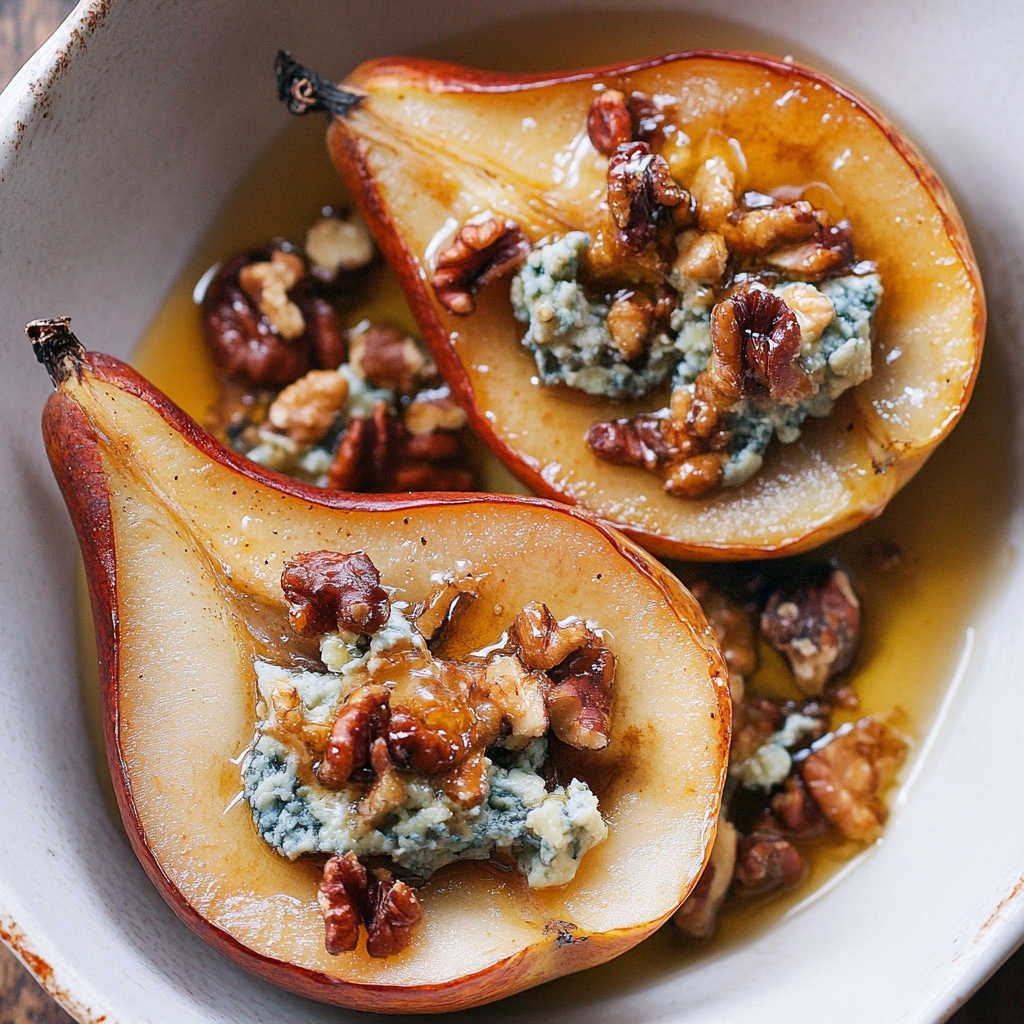 Roasted Pears with Blue Cheese, Walnuts, and Honey